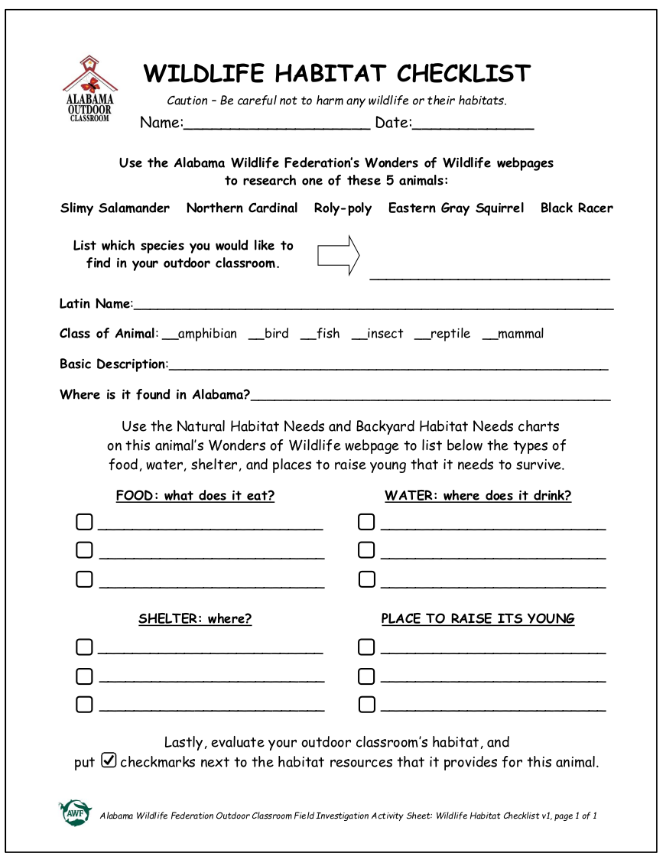 Activity Page #1: Wildlife Habitat Checklist for Animal in OC (or as Word Doc)