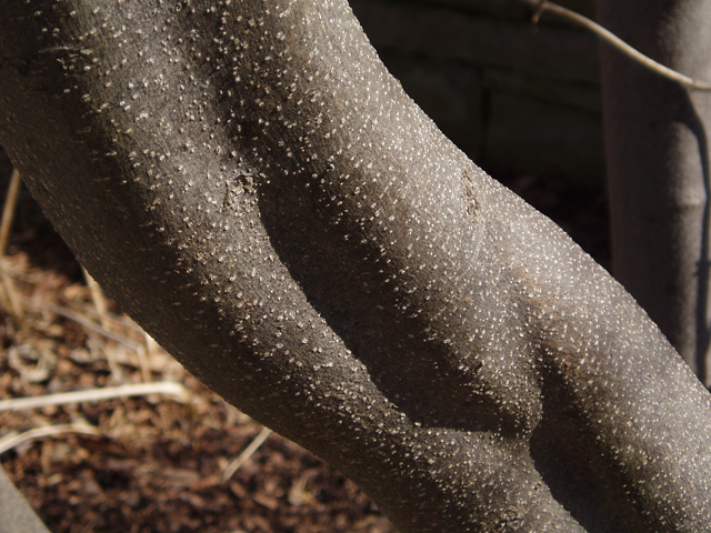 New stems are light green with a spicy fragrance; Bark is brown or gray-brown with ligher colored spots called lenticels